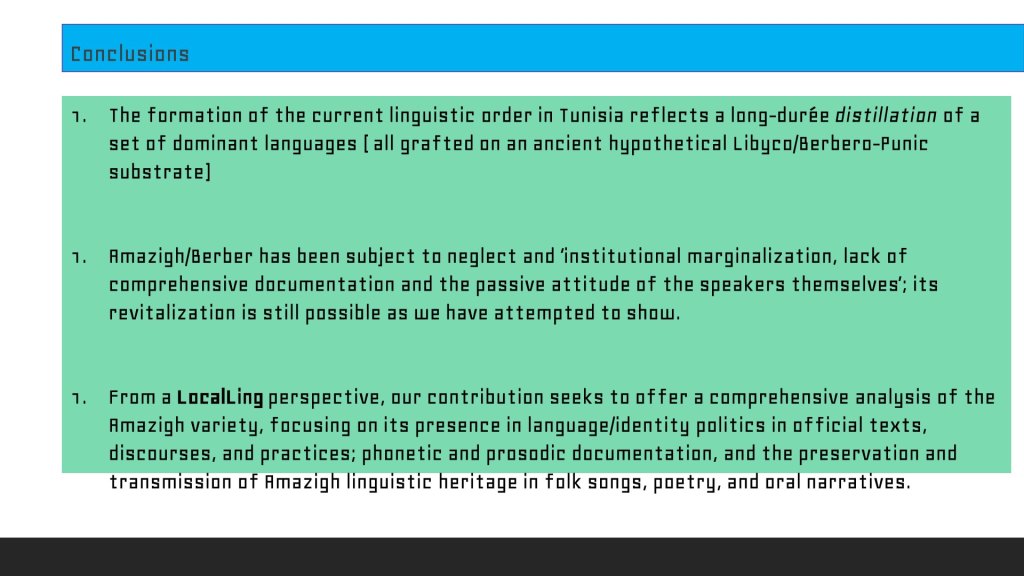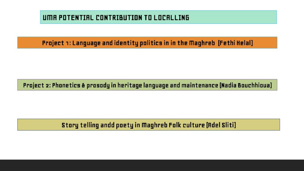 From a LocalLing perspective, my research explores Heritage & minoritized language revitalization efforts from a discourse planning perspective (often neglected in classical LPP theory) and the way it intersects with status/official LP and performative/grassroots’ community operations.